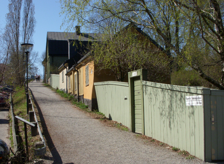 Yttersta Tvärgrändin varrella on myös vanhoja puutaloja. Koko tämä Södermlamin pohjoinen laue, Slussenilta länteen päin on todellakin idyllinen ja rauhallein alue. Täällä on jyrkkiä mäkiä ja portita joten tällä alueella kävely vaatii kuntoa.